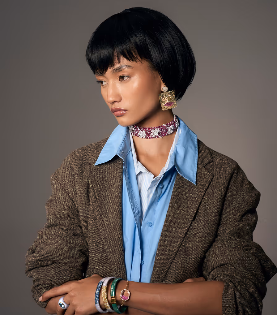 Jewellery that reflects you — modern, confident, rooted, and radiant. Each piece is chosen for individuality, not mass appeal.